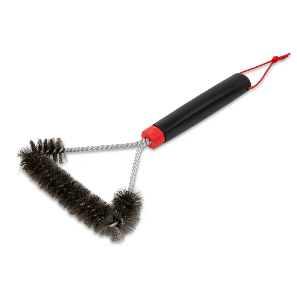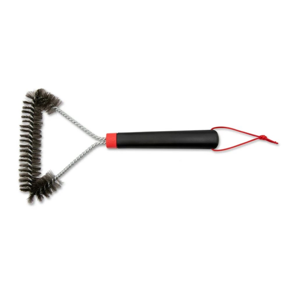 This three-sided grill brush is made to remove grease and debris from cooking grates of all sizes. The handle design provides a secure grip when brushing off stuck-on food or cleaning tight spaces. Use this grill brush to clean your grates before each use so that your grill lasts longer and your next meal is as delicious as the one before.